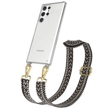 Handykette für Samsung Galaxy S22 5G Boho Schnur Hülle Band breit Grau / Schwarz