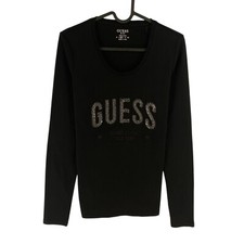 Guess T-Shirt Damen M Pullover Rundhals Schwarz Dehnbar Detailliert