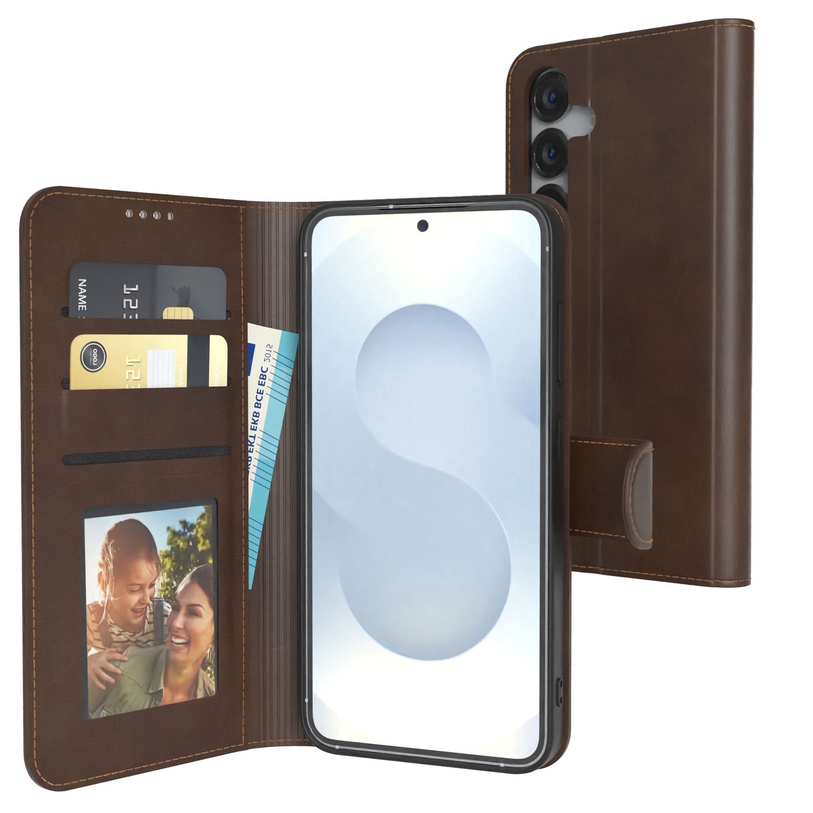 Kunstleder Handyhülle für Samsung Galaxy S25 Hülle klappbar Flip Case in Braun
