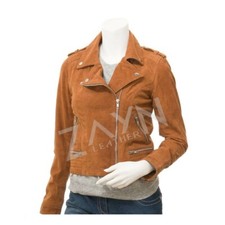 Damen hellbraune Wildleder Lederjacke echtes Wildleder Hemd Stil weicher...