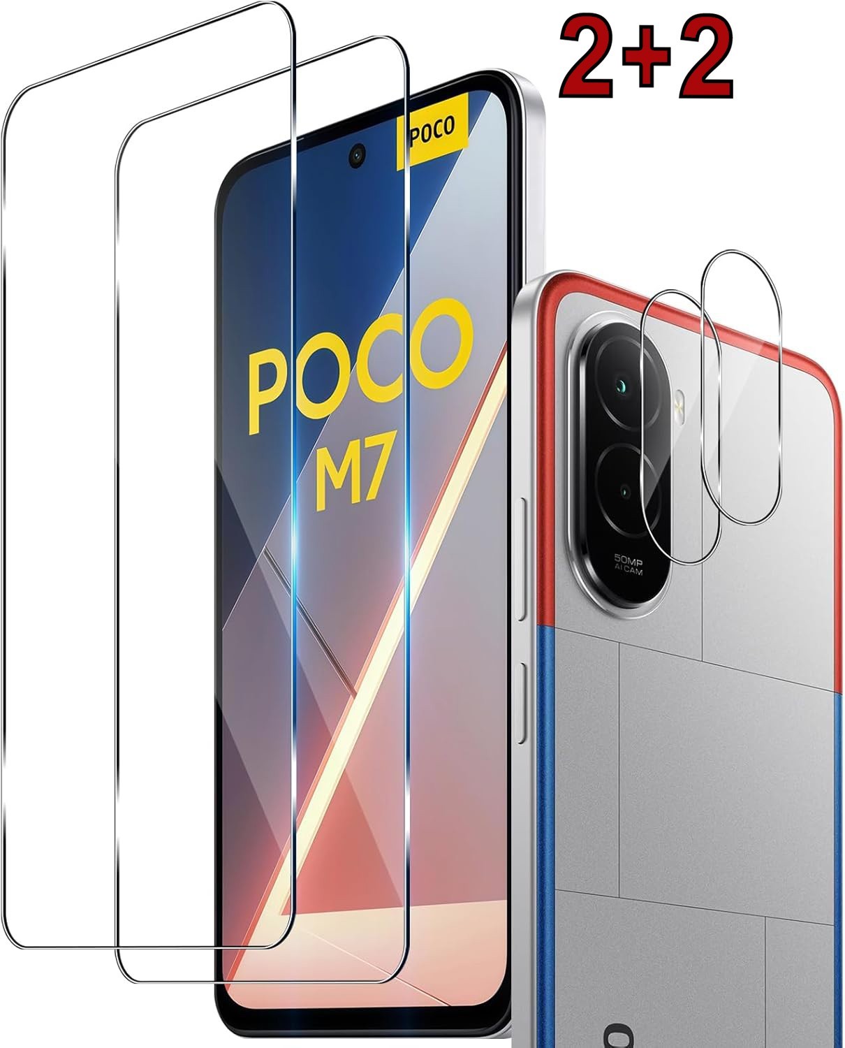2x Schutzglas + 2x Kameraschutz für Xiaomi POCO M7 4G Panzerfolie Glas Full 9H