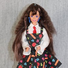 A beautiful Barbie doll dating from the 1980s, dressed in a gorgeous fashion outfit. Her bright face is beautiful, with a pretty toothy smile and sparkling blue eyes. She has straight arms with good hands and smooth legs and a clean body.