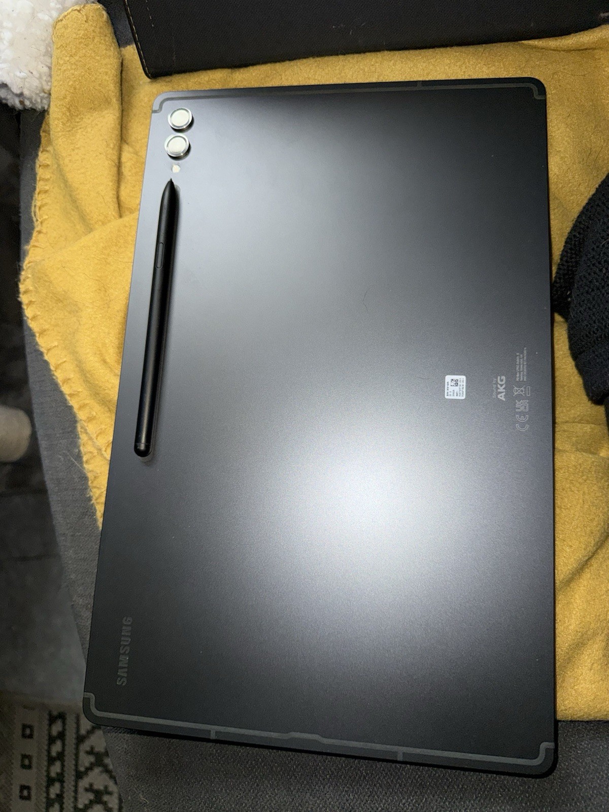 Ohne ladekabel und ohne Original Verpackung.Momentan befindet sich eine displayfolie drauf.Mit klappbarer Hülle und pen