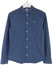 TOMMY HILFIGER Slim Fit Shirt Herren LARGE Pinstriped Spread Collar Round Hem