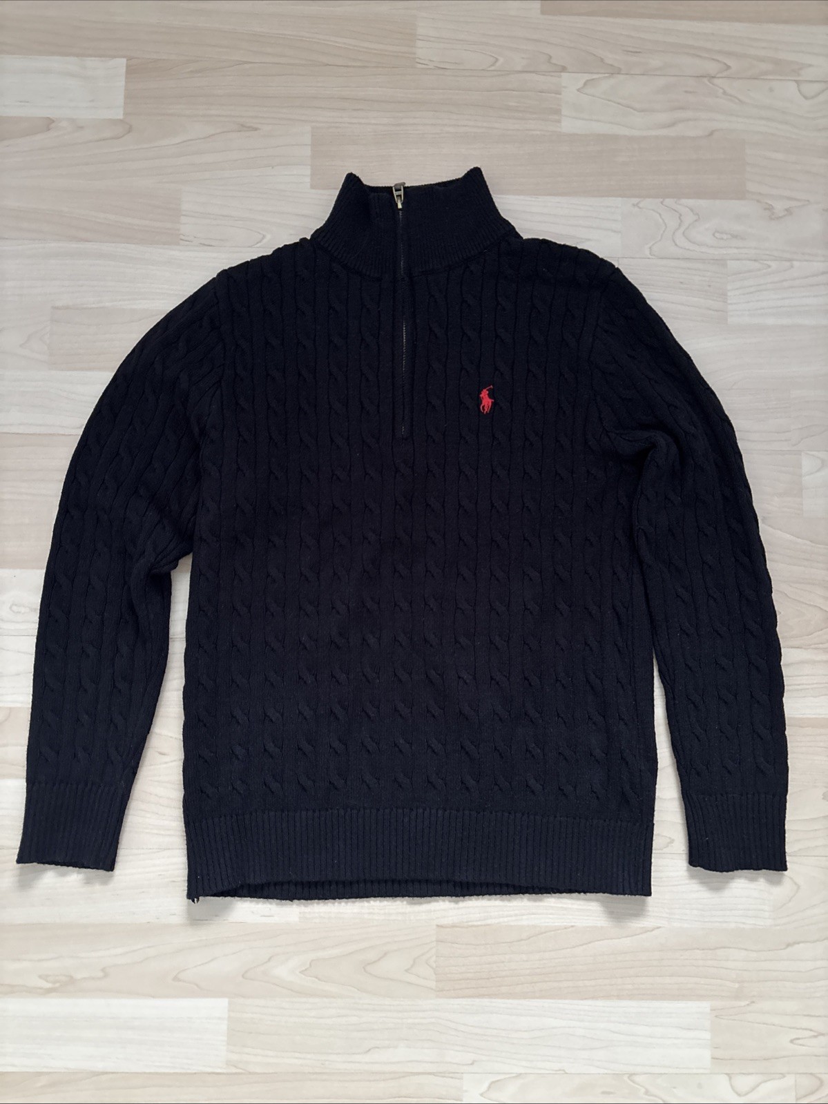 Erleben Sie stilvolle Eleganz und Komfort mit dem Polo Ralph Lauren Herrenpullover in klassischem Schwarz. Dieser feinstrick Pullover mit Rundhalsausschnitt besticht durch seine hochwertige Baumwollqualität, die für ein angenehmes Tragegefühl sorgt. Die Größe S passt perfekt zu einer regulären Passform und macht ihn zu einem vielseitigen Kleidungsstück für jede Freizeitaktivität. Mit langen Ärmeln und dem ikonischen Logo als Akzent vereint dieser Pullover Design und Funktionalität. Er ist maschinenwaschbar und somit pflegeleicht. Eine ideale Wahl für die kühleren Tage, die ganze Jahreszeit, kann dieser Pullover ohne Muster in jeder Garderobe als unverzichtbares Basic-Stück gelten.