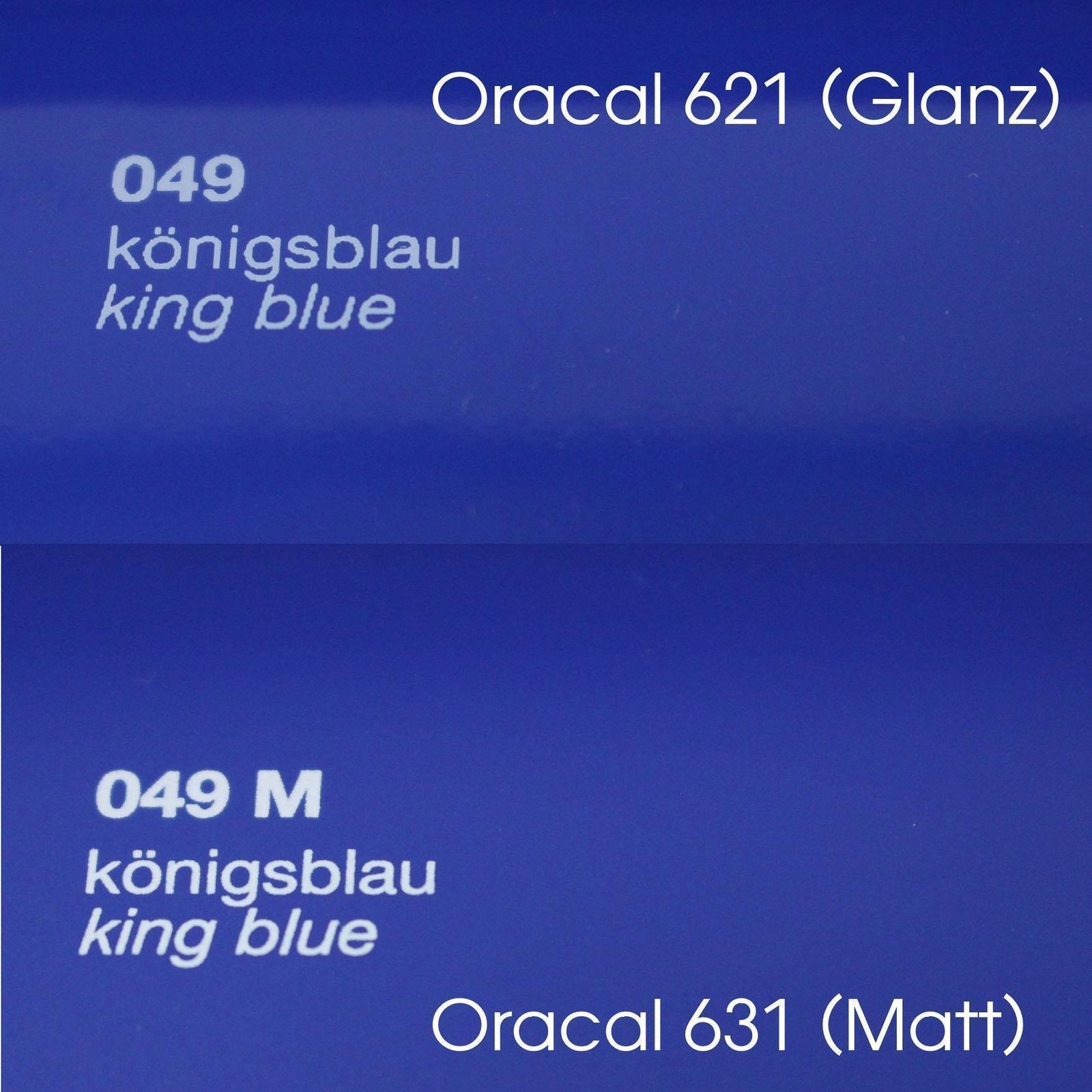 Oracal 621 (Glanz) Economy Cal - Weich PVC Folie (0,075mm) - 45 glänzende Farben - sehr gut geeignet für die Verarbeitung auf Schneidplotteranlagen - Für Markierungen, Beschriftungen und Dekorationen - Haltbarkeit: Schwarz/weiß 4 Jahre, Transparent/farbig/metallic 3 Jahre - Polyacrylat, ablösbar Oracal 631(Matt) Exhibition cal - Weich PVC Folie (0,08mm) - 60 matte Farben - sehr gut geeignet für die Verarbeitung auf Schneidplotteranlagen - Für Markierungen, Beschriftungen und Dekorationen, Austellungs- und Messebau - Haltbarkeit: 3 Jahre - Polyacrylat, ablösbar.