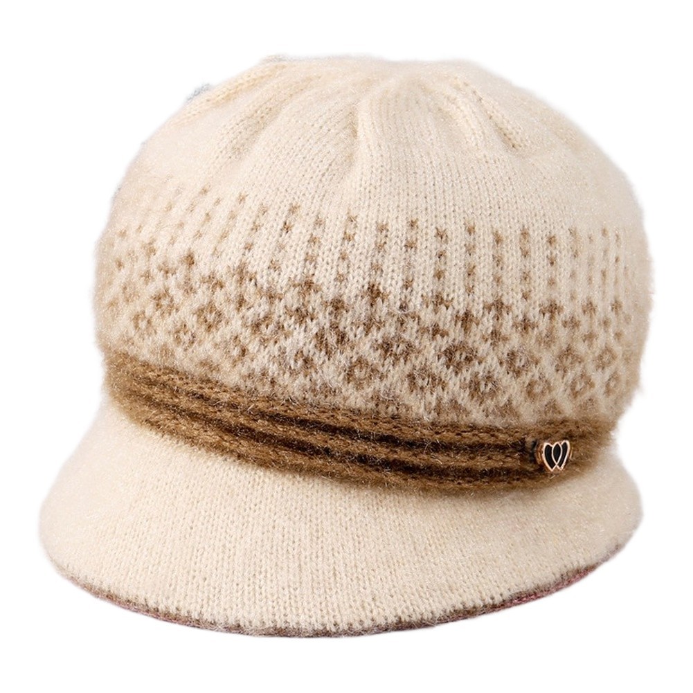 Weiche Strickmütze Beanie mit Fleecefutter und Ohrenklappen für Damen Winter W