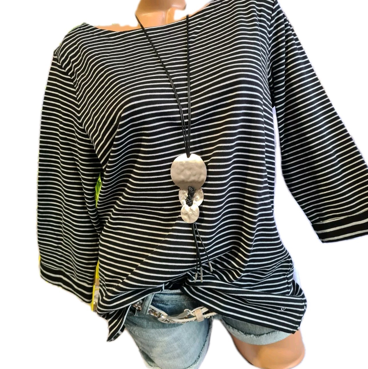 S. Oliver Tunika Shirt Damen 3/4 Ärmel schwarz weiß gestreift Übergröße (551)