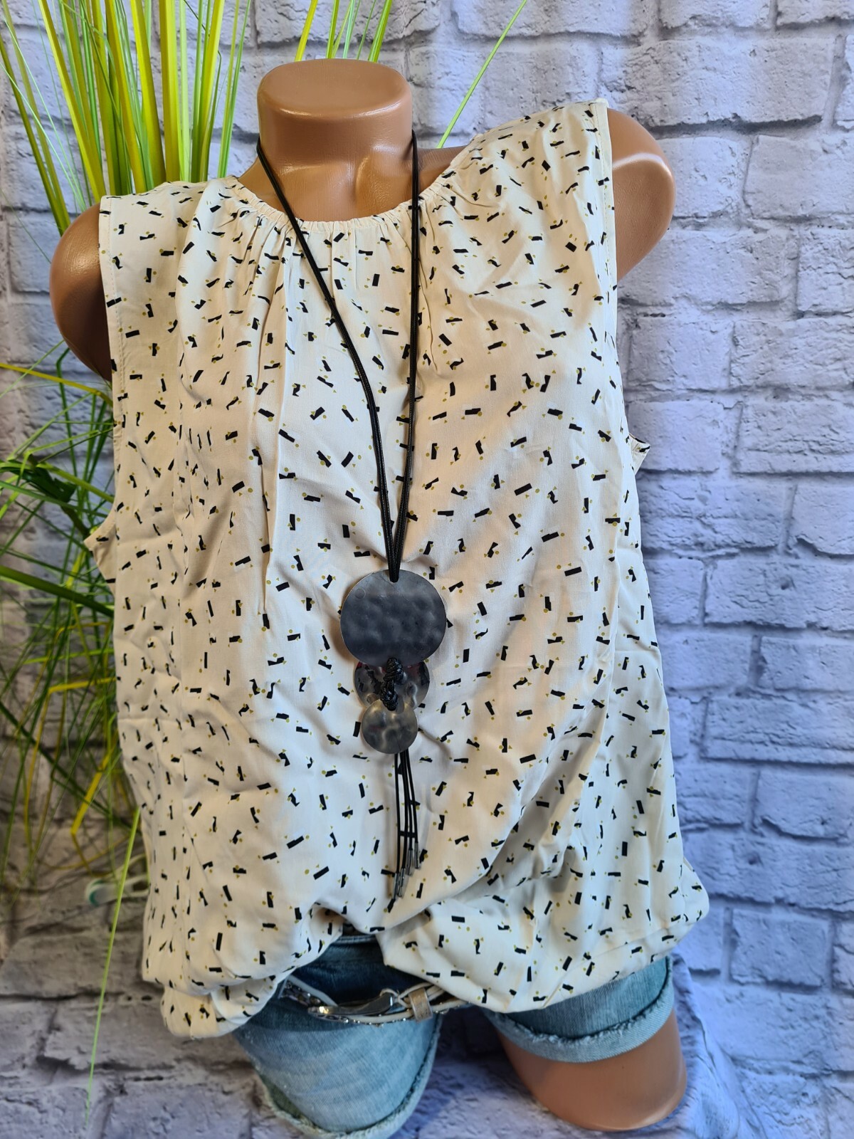 Tom Tailor Bluse Oberteil Tunika Kurzarm creme mit Muster 38 bis 44 (3 261)