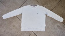 This Tommy Hilfiger womens jumper features a clean white colour with a classic cable knit texture throughout, offering understated elegance. It has a flattering V-neckline and long sleeves, with the subtle Tommy Hilfiger flag logo embroidered near the left sleeve cuff for a touch of iconic branding. Made from 100% soft cotton, this jumper is lightweight yet warm and breathable, providing comfort for everyday wear. The fit is relaxed with a slightly longer back hem, ensuring ease of movement and a modern silhouette. Ideal for layering or wearing alone during cooler seasons. Item is in good used condition.