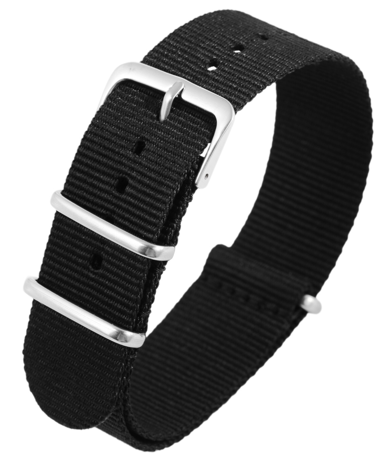 Nato Uhrenarmband aus Nylon mit einer Stegbreite von 14 bis 22mm 14mm - Uhrenarmband ca. 23,5mm lang (mit 12 Löcher für die Schließe). 16mm - Uhrenarmband ca. 24,5mm lang (mit 12 Löcher für die Schließe). 18mm - Uhrenarmband ca. 25,5mm lang (mit 12 Löcher für die Schließe). 20mm - Uhrenarmband ca. 25,5mm lang (mit 12 Löcher für die Schließe). 22mm - Uhrenarmband ca. 27,0mm lang (mit 12 Löcher für die Schließe). Nato Uhrenarmband in 14, 16, 18, 20 und 22mm Bandbreite Hochwertiges Material und Verarbeitungsqualität Material: Nylon Farbe: Schwarz, Blau, Rot, Beige, Braun, Orange, Rot- Blau, Khaki oder Grau Hervorragender Tragekomfort 1,3 mm stark Länge 23,5 bis 27,0 cm (siehe Beschreibung oben) Passend für alle Handgelenksumfänge.