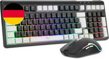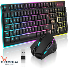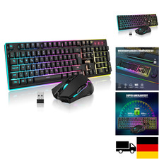 Kabellose 2,4 G wiederaufladbare Gaming-Tastatur und Maus Set, 3800 mAh große Kapazität, LED Hintergrundbeleuchtung + 2400 DPI 7 Farben Atemlicht Maus. Und die Tastatur hat einen eingebauten 3000-mAh-Akku, und die Maus hat einen eingebauten 800-mAh-Akku, der den Ärger des häufigen Batteriewechsels beseitigen kann.