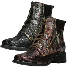 Laura Vita Damen Stiefelette Leder mit Blumenmuster modische Raffung Cyrielle 16