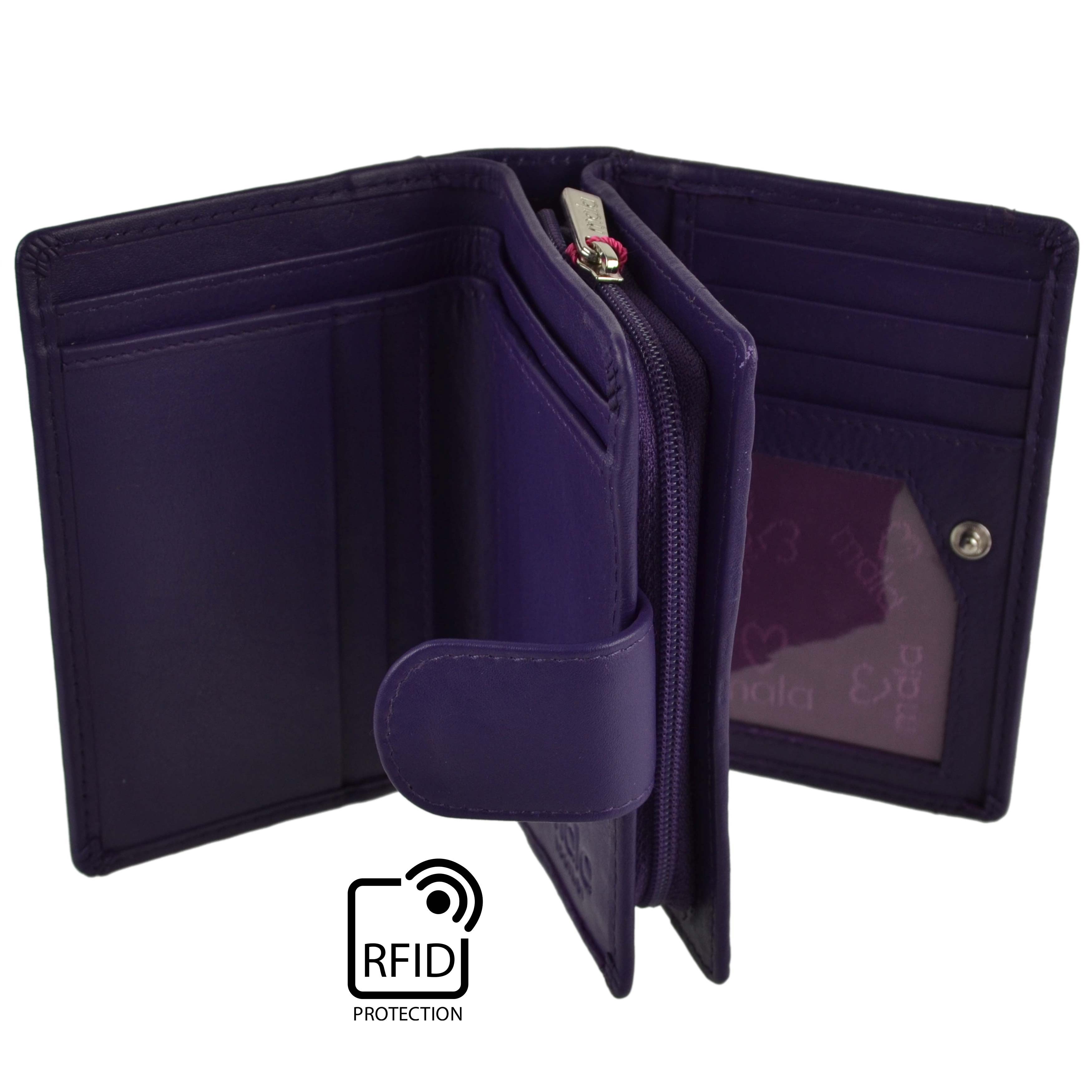 Kompakte Damen-Geldbörse/Portemonnaie aus Leder mit RFID-Schutzlasche von Mal...