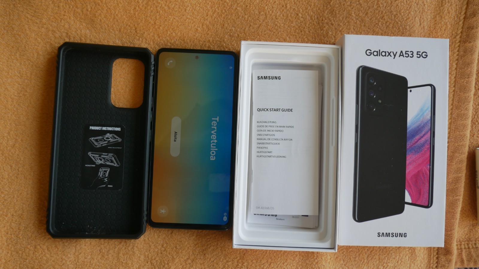 Handy mit OVP Schutzhülle in Blau.