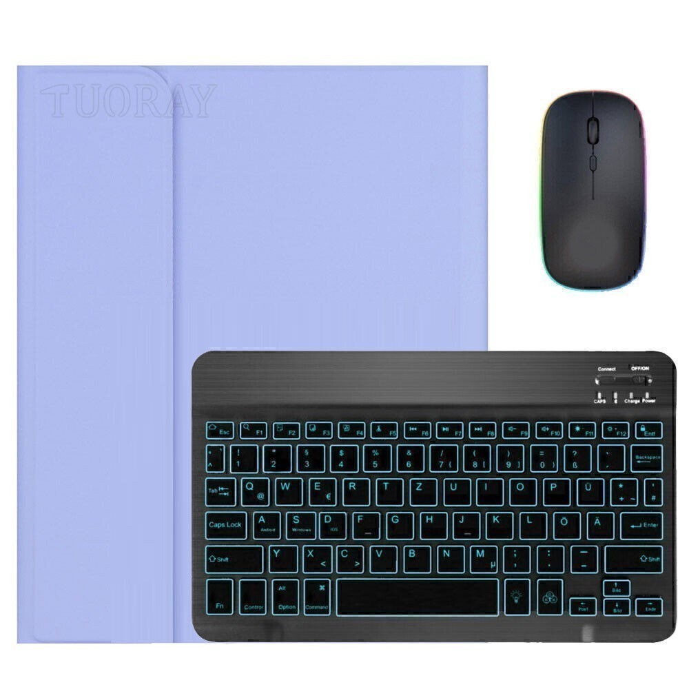 Bluetooth-Tastatur (QWERTZ) mit Beleuchtet. Hot Keys: Fn + Funktionstaste, drücken Sie Fn und die blauen Tasten auf der Tastatur. Die Tastatur ist mit Bluetooth verbunden, die Maus ist mit Bluetooth verbunden (Ihr Gerät sollte die Bluetooth-Funktion unterstützen).