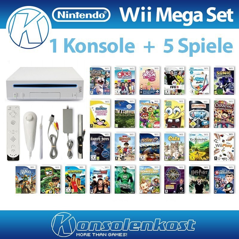 Wii - Sensorleiste. Bis zu vierWii -Fernbedienungen lassen sich kabellos über Bluetooth-Technologie mit der Konsole verbinden. Sowohl dieWii -Fernbedienung als auch der Nunchuk verfügen über dreiachsige Bewegungssensoren.