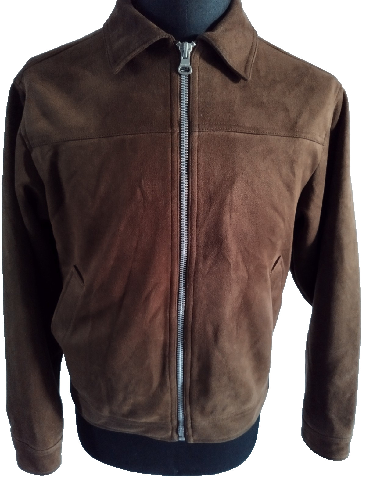 Pull&Bear Herren Wildlederjacke Braun Gr. S Echtleder Optik Vintage Freizeit #
