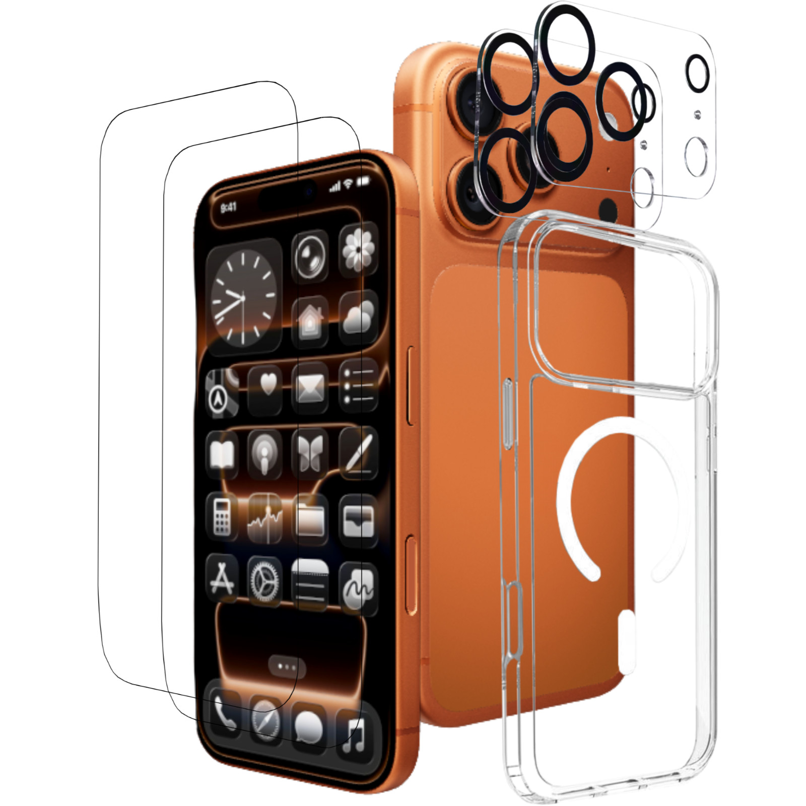 5in1 Schutzset für iPhone 17er-11er Reihe. Genau dafür ist dieses5-in-1 Schutzset gemacht. So sicherst du dein iPhone rundum ab, behältst den Original-Look – und hast bei Bedarfgleich einen Ersatz zur Hand.