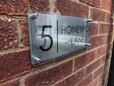 Design Hausnummer von 15x15 - 40x40cm individuell gestaltet Moderne Hausnummer hergestellt auf Kundenwunsch durch Lasergravur 2x Acryl 3,0mm Frontfläche hochglänzend Wahlweise mit und ohne Alu Wandabstandhalter. Die Schriftgröße variiert aufgrund der Länge der Beschriftung Abmessung des Schildes wählbar: von 15x15cm bis 40x40cm. Sie erhalten ein Komplettpaket bestehend aus: Grundplatte hochwertiges Acryl weiß 3,0mm, Gravurplatte RAL 9006 silber hochglänzend hochwertiges UV beständiges Acryl 3,0mm Optional erhalten sie mit den Alu Wandabstandhalter auch das Montagematerial bestehend aus Dübel und V2A Schrauben.