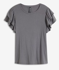 Neu Shirt mit Volant Gr. 32/34 Schwarz Damen Langarmshirt Bluse Oberteil