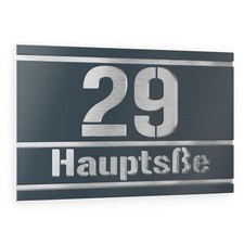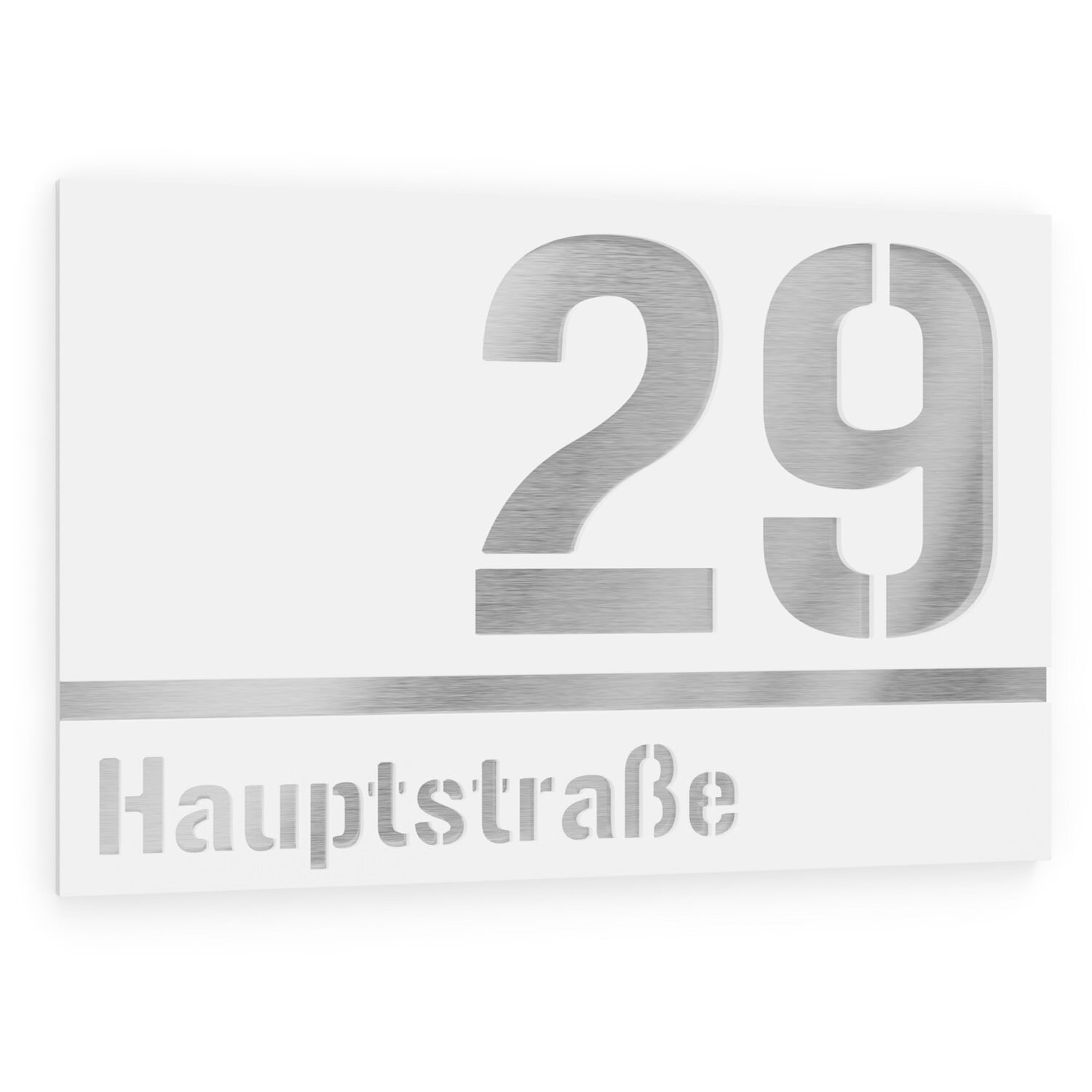 Graviers Hausnummer + Straßenname Haus Nr. Schild mit Gravur Edelstahl Weiß