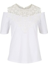 Shirt mit Spitze in Weiß Größe L 3/4-Arm