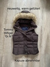 TOMMY HILFIGER Daunen Steppweste Damen Gr. M 38 36 gefüttert Fell Kaputze braun