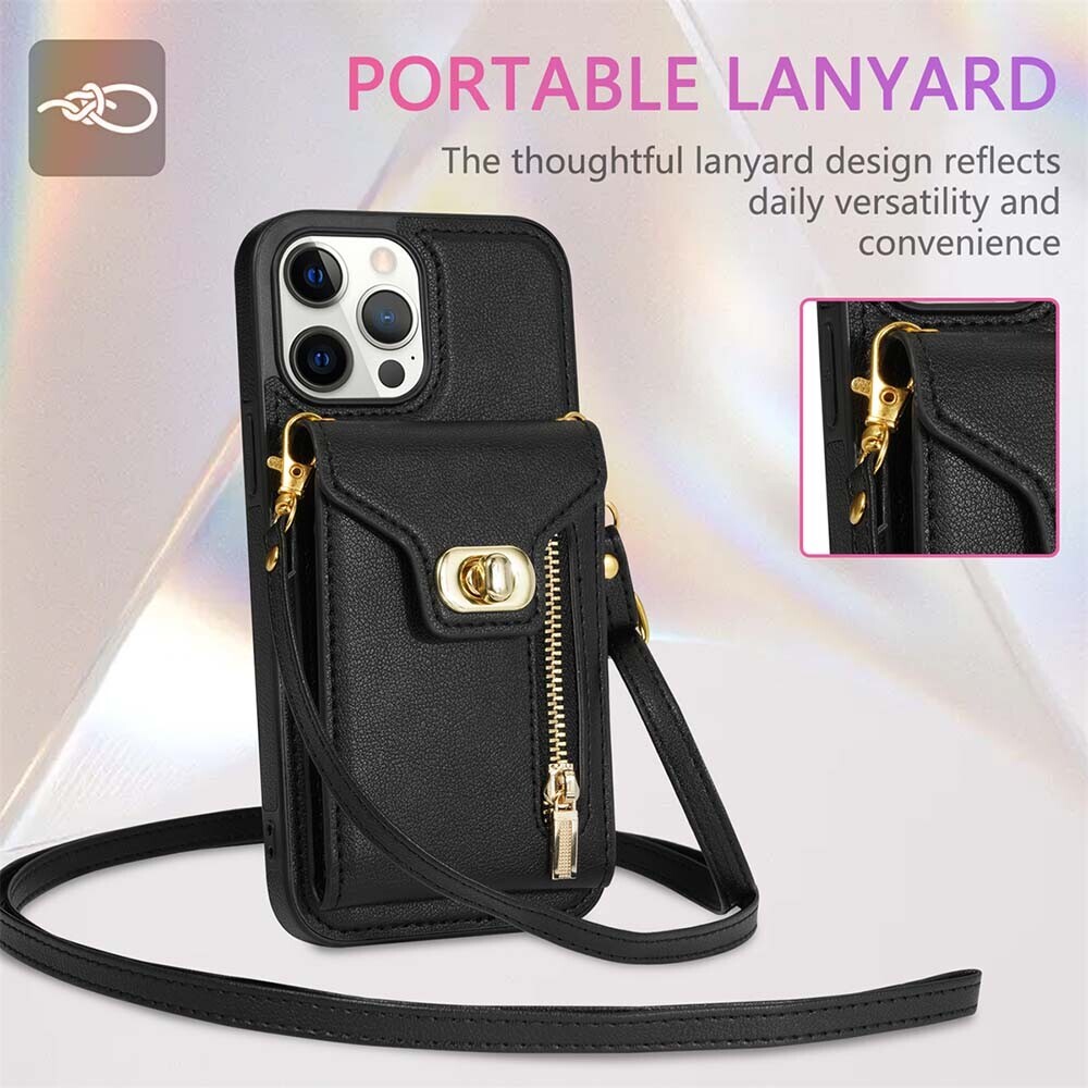 Hülle Leder Kartenfach Cover mit Band Handykette für iPhone 15 14 13 Pro 12 11