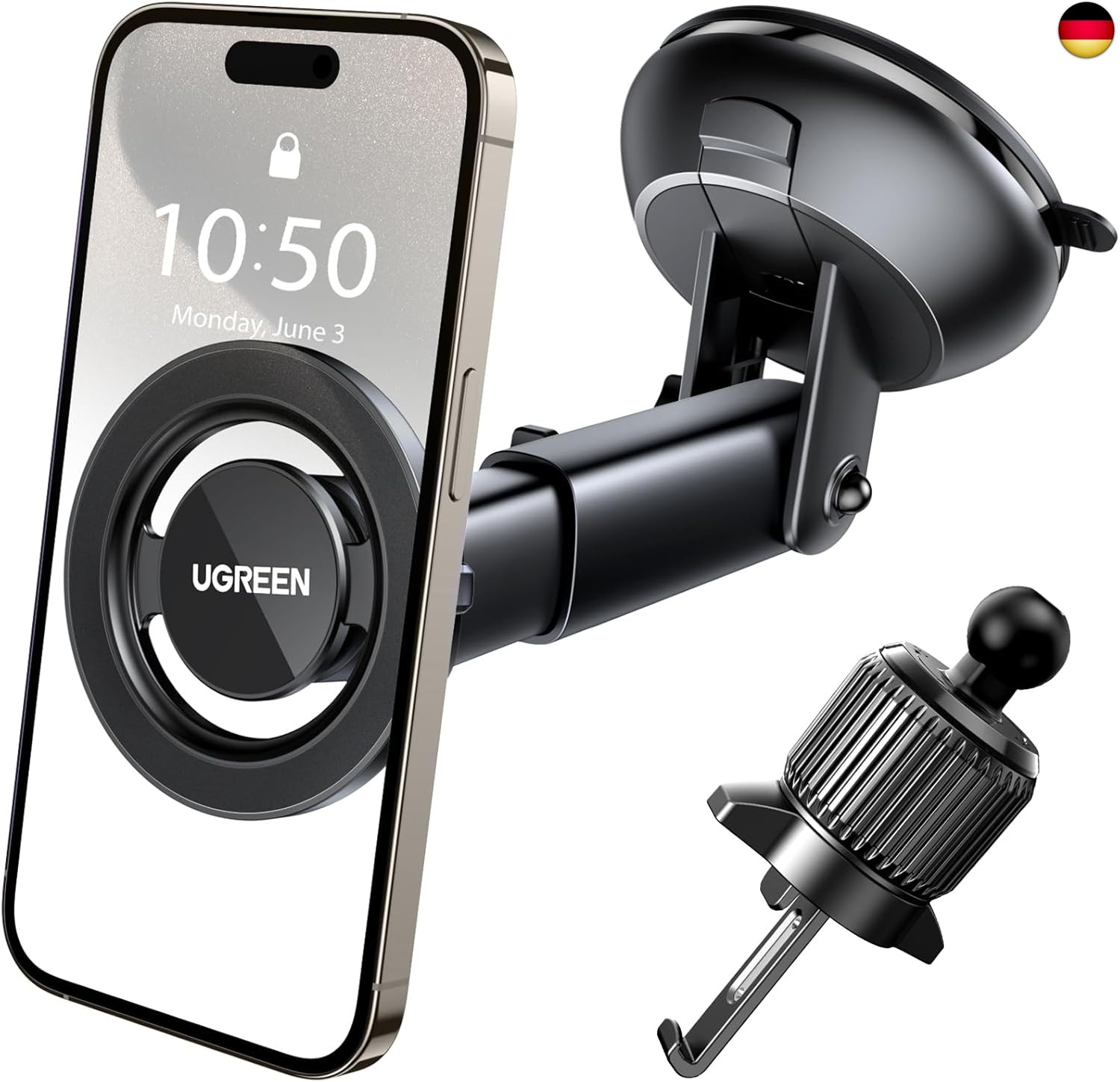 UGREEN MagSafe Autohalterung 2 in 1 Handyhalterung Auto Magsafe 360° Drehbar Kfz Handyhalterung Auto Lüftung und Saugnapf kompatibel mit iPhone 16/15/14/13/12 Pro Max Mini und Allen Smartphones. Speziell kompatibel mit die iPhone 16/15/14/13/12 Serie entwickelt: Die neue MagSafe Autohalterung 2023 von UGREEN ist mit 12 vergrößerten superstarken Magneten ausgestattet und wurde speziell für MagSafe entwickelt.