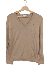 TOMMY HILFIGER V-Ausschnitt-Pullover Damen Pullover Gr. DE 38 braun-weiß-pink