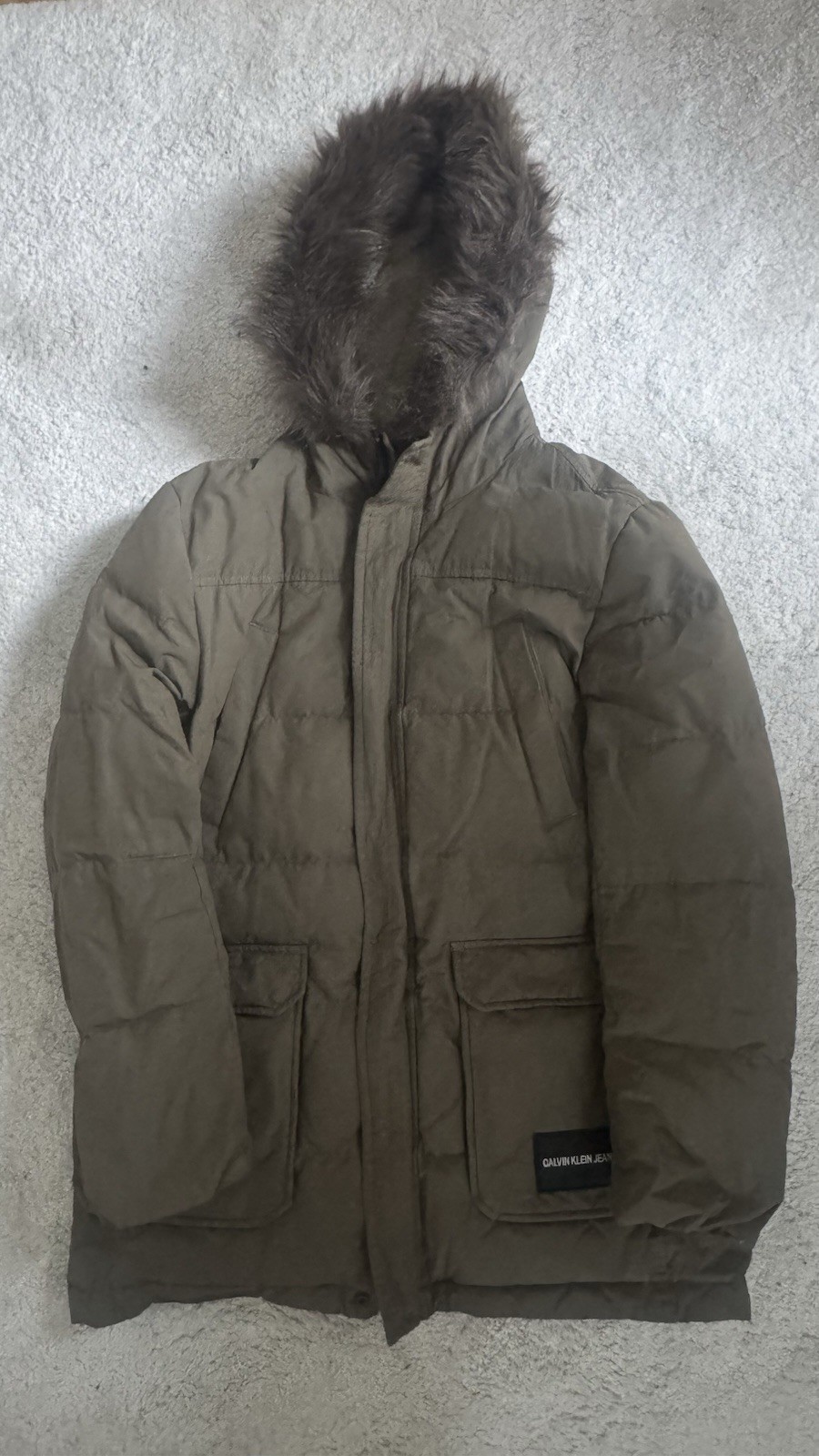 Verkaufe eine Calvin Klein Winterjacke in Größe L. Die Jacke wurde selten getragen und ist insgesamt in sehr gutem Zustand. Die Jacke ist aus Daunen. Warm & hochwertig Gepflegt, kaum Gebrauchsspuren Kleiner Riss seitlich am Arm, ansonsten einwandfrei Perfekt für die kalten Wintertage Neupreis: ca. 320 € Abholung oder Versand möglich. Bei Fragen einfach melden!