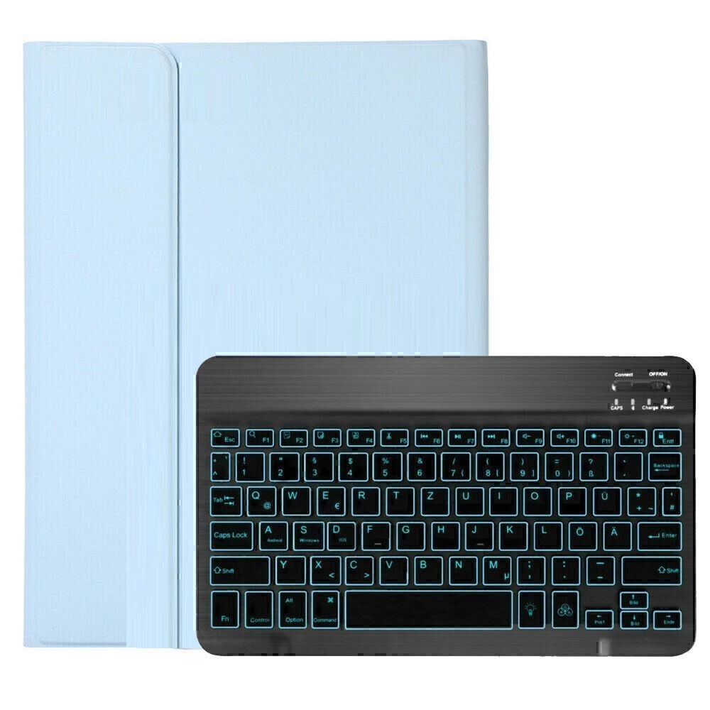 Bluetooth-Tastatur (QWERTZ) mit Beleuchtet. Die Tastatur ist mit Bluetooth verbunden, die Maus ist mit Bluetooth verbunden (Ihr Gerät sollte die Bluetooth-Funktion unterstützen). Hot Keys: Fn + Funktionstaste, drücken Sie Fn und die blauen Tasten auf der Tastatur.