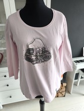 Farbe anthrazit. V-Ausschnitt mit Stickerei-pink und Perlen schwarz verziert. Material 95 % Viskose, 5 % Elasthan. Samoon by Gerry Weber Shirt Größe 42.