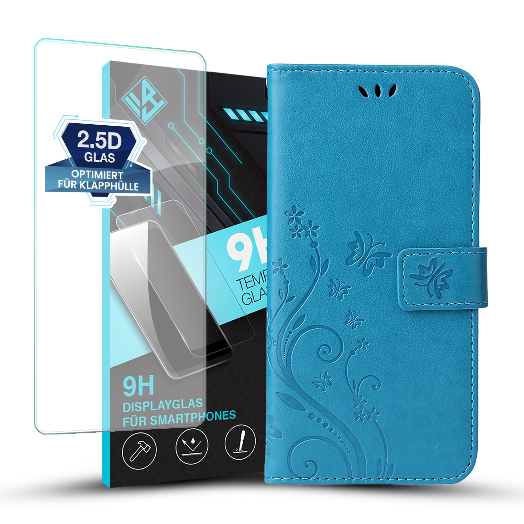 Handy Tasche für Samsung Galaxy A40 Handyhülle Blumen Case Cover 9H Displayglas