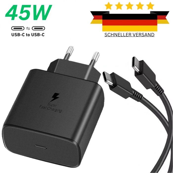 45W Super Schnellladegerät für Galaxy S20-S24 Ultra, A54, A53 – EU Typ C ? Schnelles und Effizientes Laden Laden Sie Ihre Geräte in Rekordzeit auf! Mit der 45W Super-Schnellladefunktion können Sie Ihr Galaxy S20 bis S24 Ultra, A54, A53 und viele weitere Typ C-kompatible Geräte in kürzester Zeit vollständig aufladen. ⚡ Universelle Kompatibilität Dieses Ladegerät unterstützt mehrere Geräte und kommt mit EU Steckertypen.Ideal für Reisen oder den täglichen Gebrauch. .