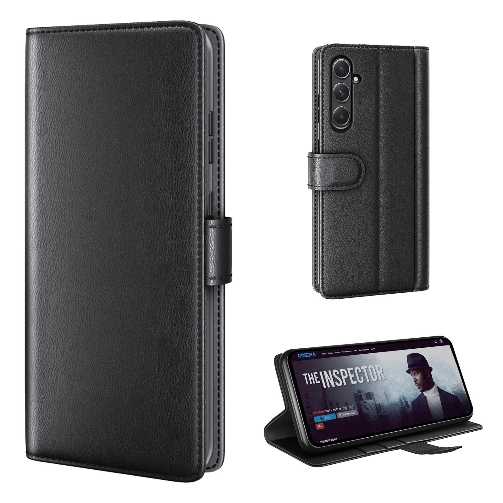 Hochwertige Klapphülle aus Leder für Samsung Galaxy A15 - Hochwertige und pflegeleichte Materialien - Exakte Passgenauigkeit durch verstärkte Kunststoffschale (Schwarz) - Smartes Design mit Karten- und Geldfächern - Praktische Smartstand-Funktion - Schneller Blitzversand und engagierter Kundendienst an 7 Tagen die Woche!.