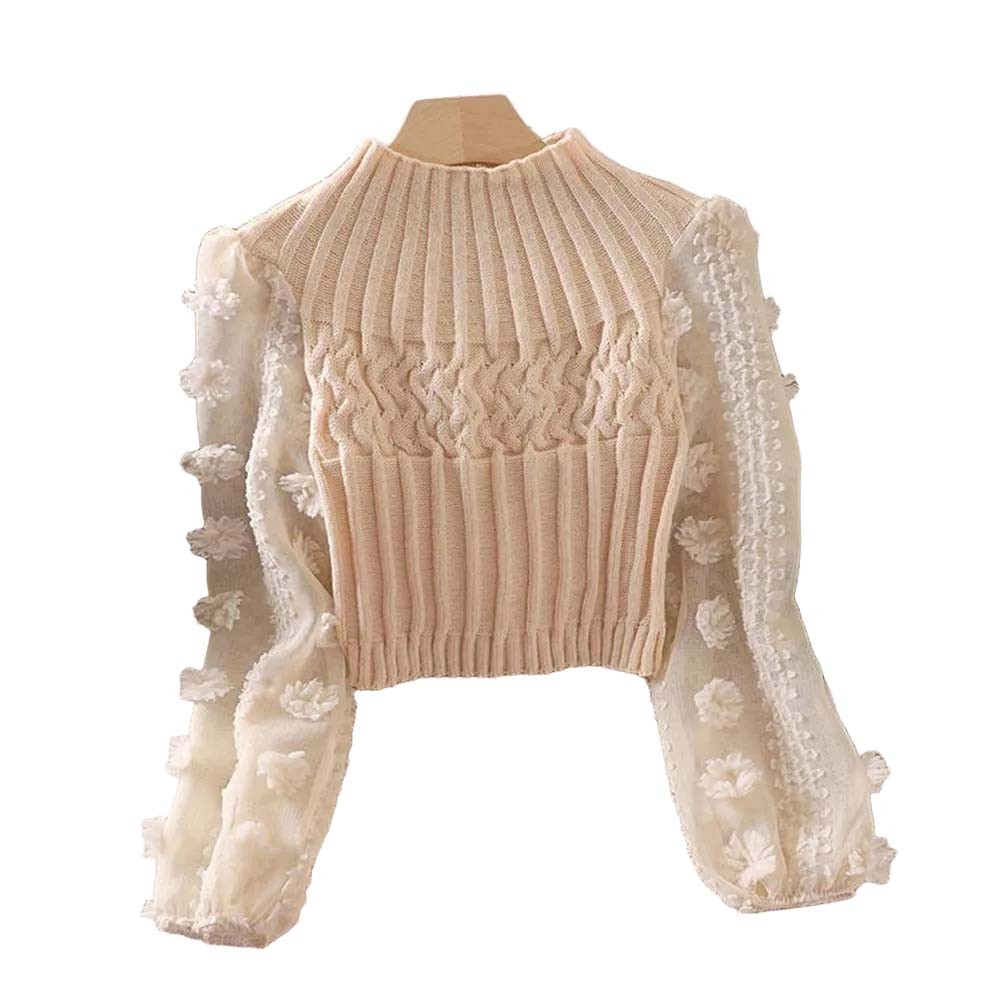 Modischer Damen Slim Top Pullover mit halbem Rollkragen und Puffärmeln
