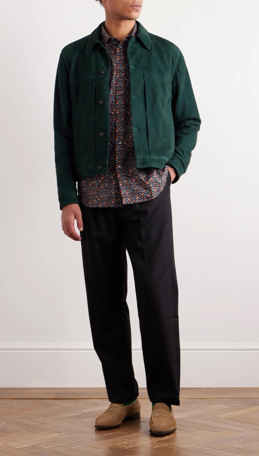 Herren grüne Wildleder Hemd Leder Trucker Jacke Größe M