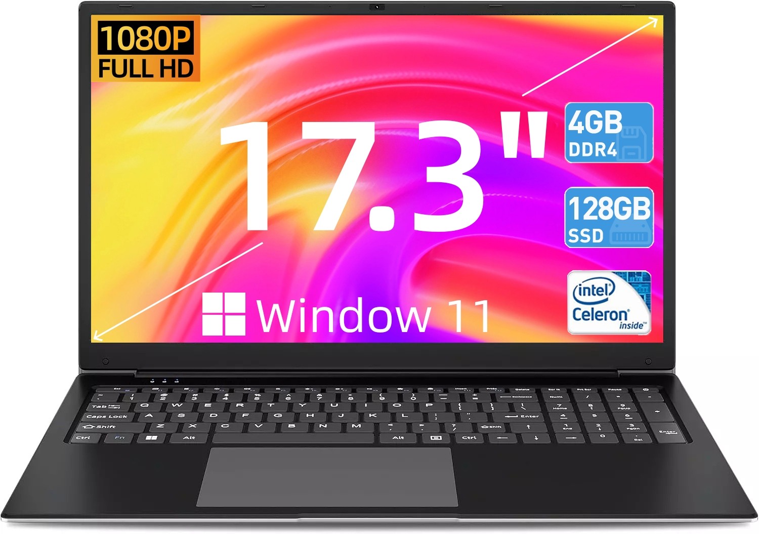 SGIN 4GB RAM 128GB SSD Notebook 17.3'' Laptop Intel Dual-Core Wi-Fi Windows 11
