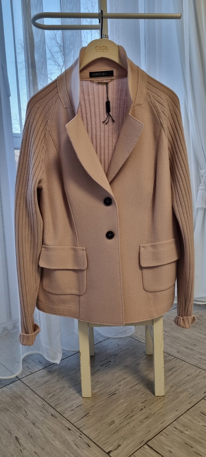 Dieser hochwertige Walkblazer von Marc Cain Collections besticht durch seine tallierte Form und Ärmel aus Rippstrick. Das Modell in der Größe XL ist in der Farbe Rosewater gehalten und eignet sich perfekt für den Business-Look oder auch für elegante Freizeit-Outfits. Das Material besteht aus 100% Wolle und ist für alle Jahreszeiten geeignet. Zur Reinigung wird eine chemische Reinigung empfohlen. Der Blazer verfügt über eine klassische Passform und eine halblange Jacken- bzw. Mantellänge. Das Futter besteht aus Schurwolle und das Isoliermaterial aus Wolle. Ein zeitloses Modell für die anspruchsvolle Dame.