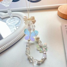 Handy Kette Perlen bunt mit Schmetterling / Handy Zubehör Geschenkidee )
