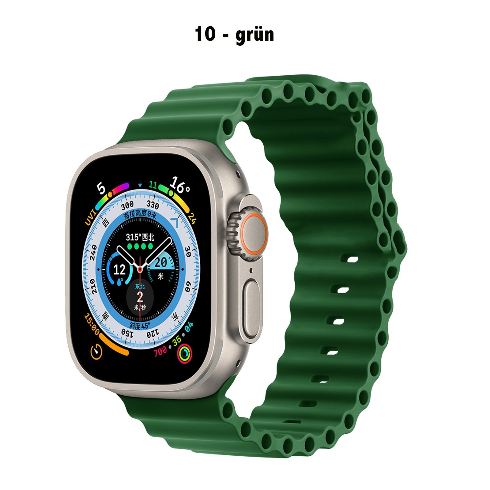 Silikon Sportarmband für iWatch Ocean Loop Apple 38-49mm Serie 1-11 / SE und. Die Armbandlänge ist perfekt auf die Größen 38/40/41mm sowie 42/44/45/49mm zugeschnitten, wodurch es für eine Vielzahl von Apple iWatch-Modellen kompatibel ist, einschließlich der Ultra-Serien und der iWatch 1-11 und Ultra 1-2-3 kompatibel.
