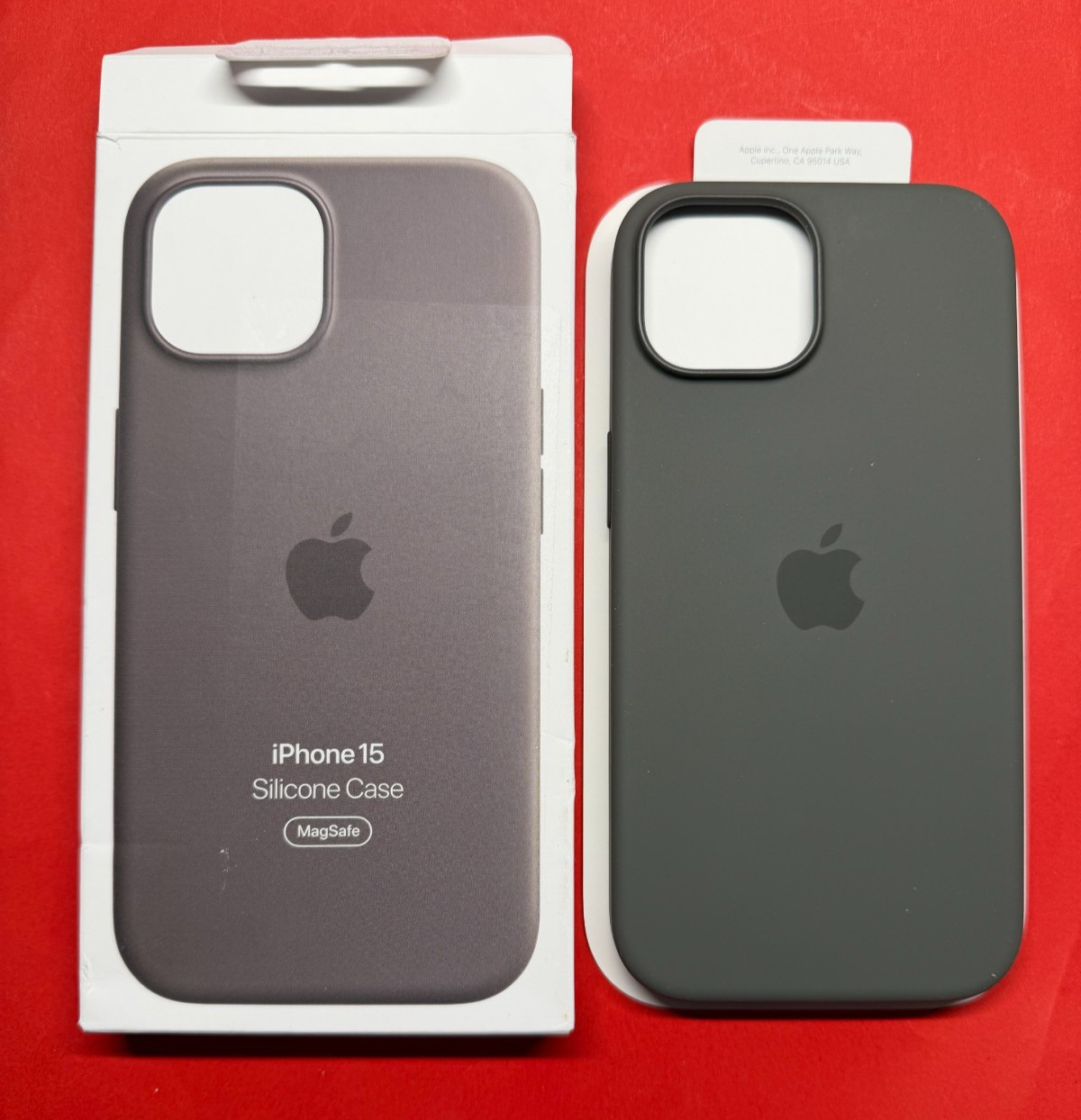 Original Apple Silikon Case MagSafe iPhone 15 Grau Tonbraun MXPG3ZM/A Neu Offen