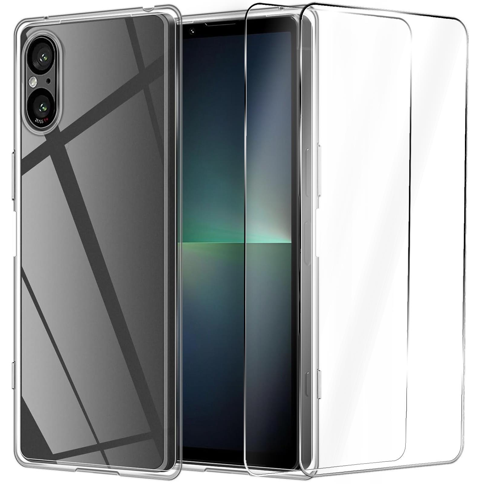 2in1 Glasfolie Display Schutz Hülle für Sony Xperia 5 III Silikon Cover Case