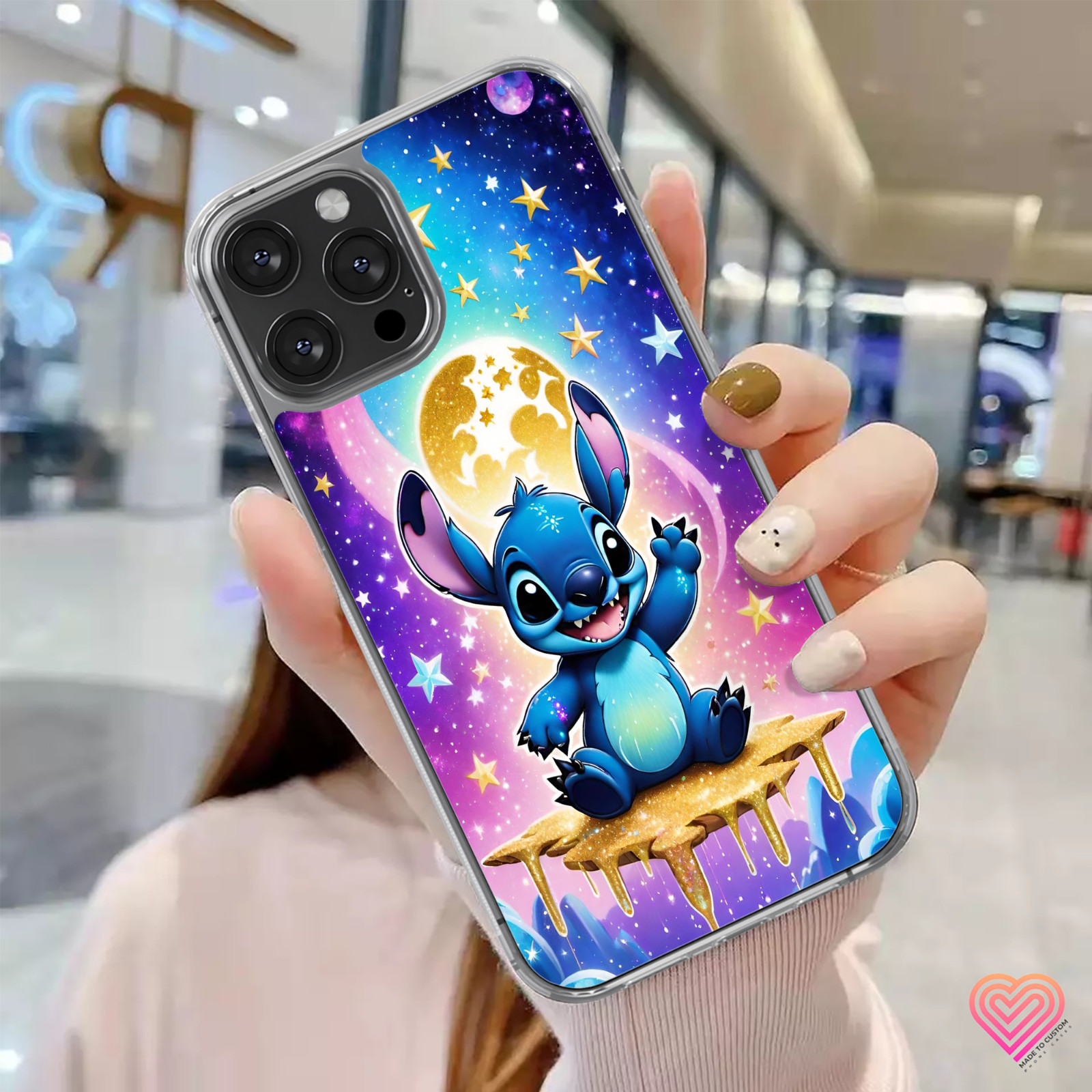 No more glitter on your hands, clothes, or surfaces - just pure glamour! ✨ Add playful charm to your phone with this Stitch phone case. Durable and protective clear TPU gel bumper. Raised front lip provides crucial screen protection.
