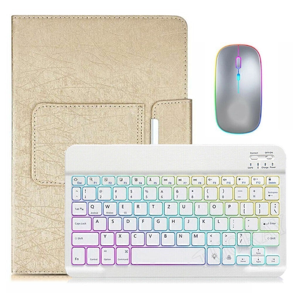Universal Hülle Tasche Für 9.7"~11" Zoll Tablet QWERTZ Beleuchtet Tastatur Maus