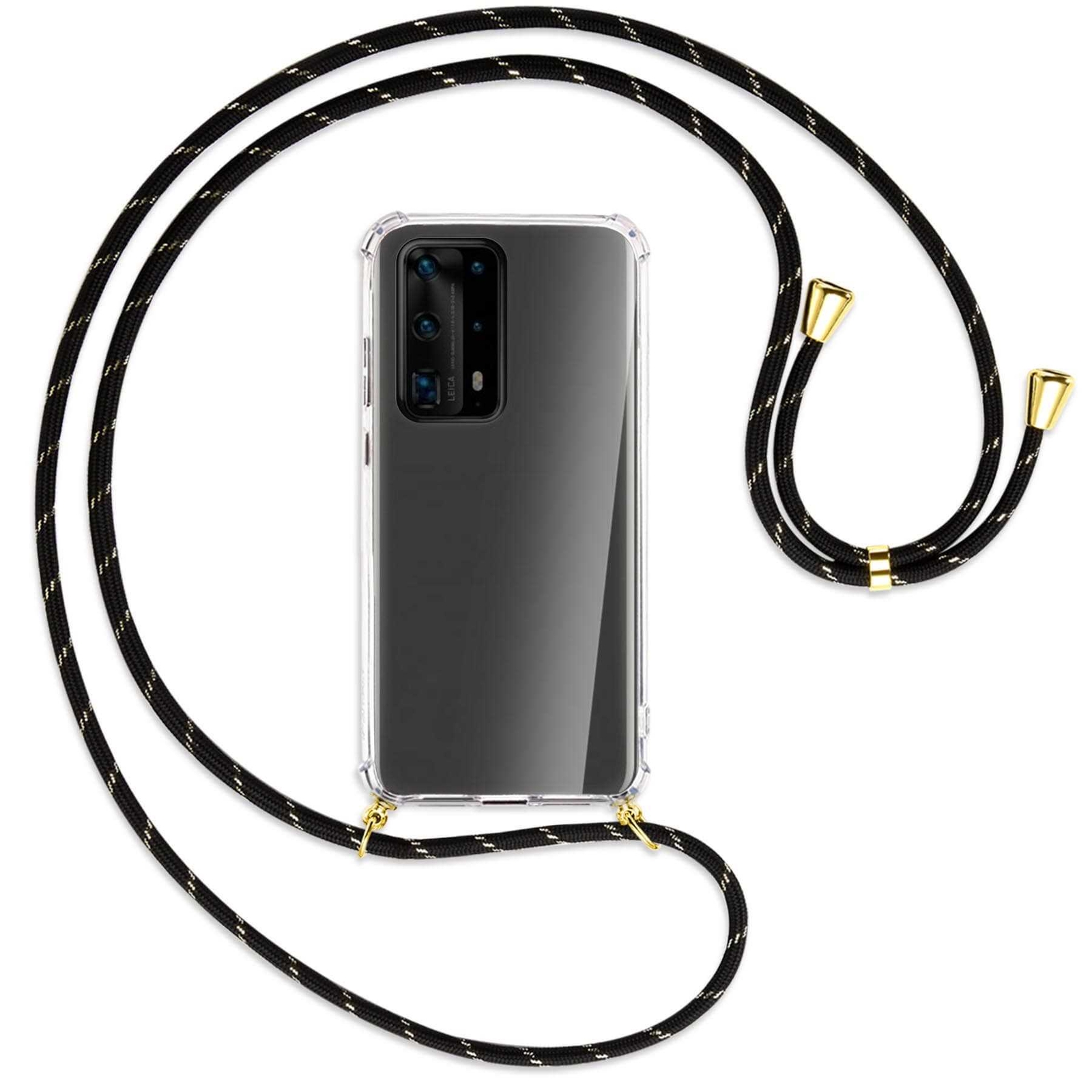 Handykette für Huawei P40 Pro Plus schwarz/gold (G) Hülle mit Band Kordel
