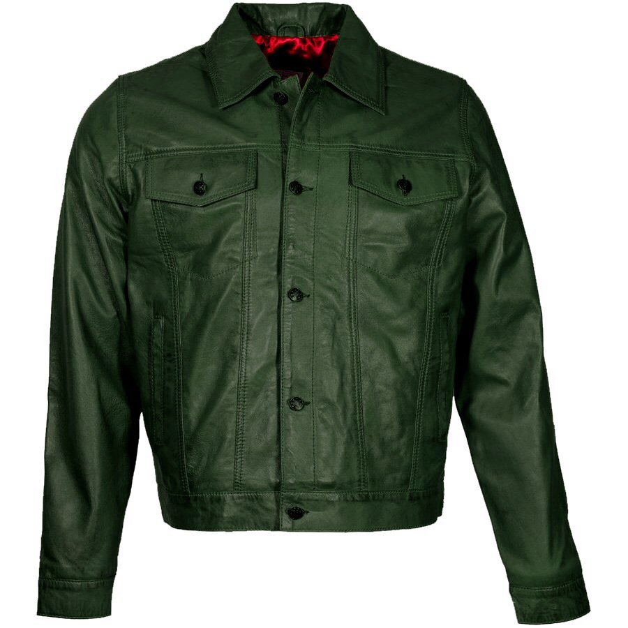 Adaptor Clothing Butterweiche Leder Trucker Jacke Flaschengrün