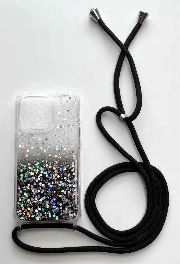 Kordel/ Band Hülle, Epoxidharz in Scharz/ Pink/ Grün/ Blau + buntschillernde Glitzer Sterne in Silber. 【Anti-Gelb】:Diese Glitzer Handyhülle ist aus Anti-Gelb Material. Die Anti-Fingerabdruck Beschichtung verleiht Ihrem iPhone Dauerhafte Klarheit und Schönheit, wertvoll.